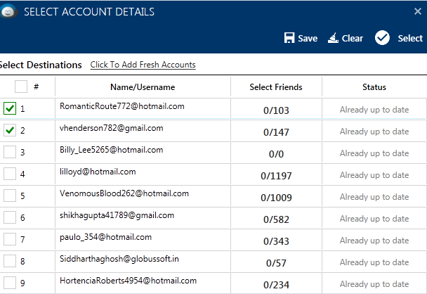 - Select Account(S) :- If this button is clicked, Socinator will open a pop-up window where you can select accounts and friends for inviting.